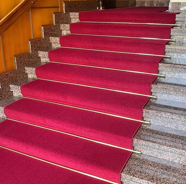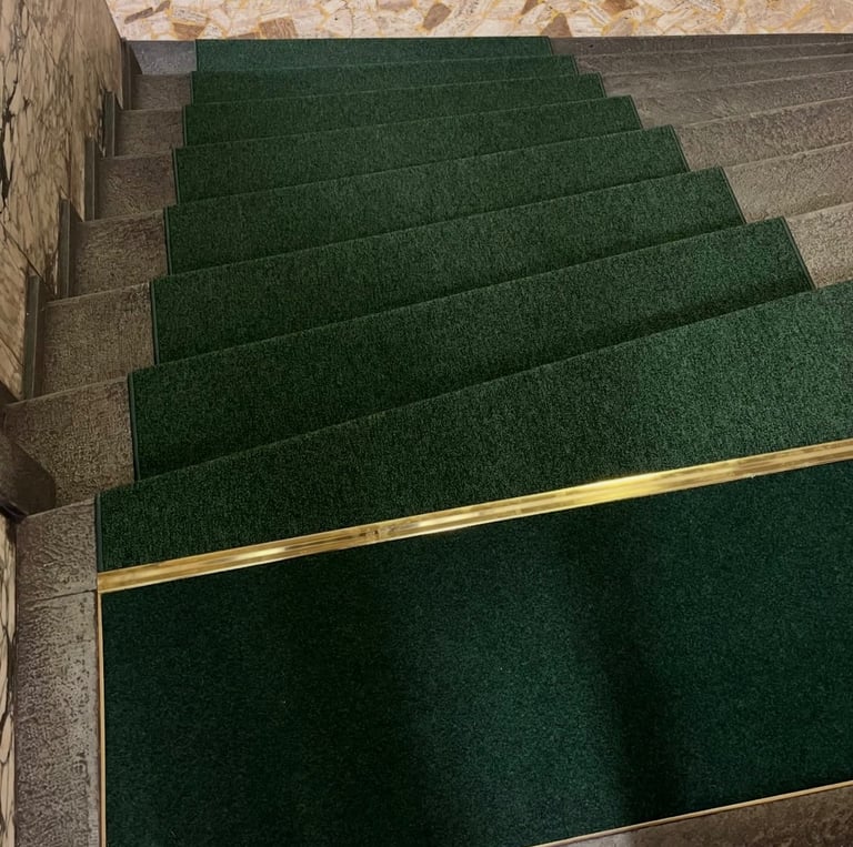 posa moquettes sagomata bordata in diagonale e zerbino nella fossa